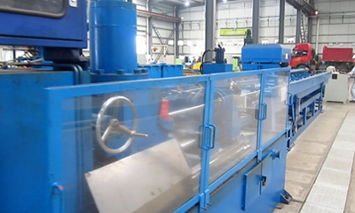 該機的特點是:實用性強,加工過程穩定,速度快,效率高,表面質量好。由于增加了油氣潤滑裝置,軸承壽命延長多倍,主軸齒輪箱傳動可兩檔變速,較原同步帶結構更加穩定可靠,操作方便,適應轉速及加工范圍更廣。加工過程中可實現在線調刀。增加檢測點后,可實現閉環在線全自動料徑控制。夾持車采用液壓比例閥傳動,編碼器信號直接控制。設備整線自動化程度高。設備具備自動和手動兩套控制系統,并連鎖使用。