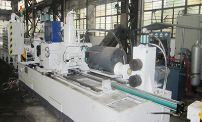該機的特點是:實用性強,加工過程穩定,速度快,效率高,表面質量好。由于增加了油氣潤滑裝置,軸承壽命延長多倍,主軸齒輪箱傳動可兩檔變速,較原同步帶結構更加穩定可靠,操作方便,適應轉速及加工范圍更廣。加工過程中可實現在線調刀。增加檢測點后,可實現閉環在線全自動料徑控制。夾持車采用液壓比例閥傳動,編碼器信號直接控制。設備整線自動化程度高。設備具備自動和手動兩套控制系統,并連鎖使用。